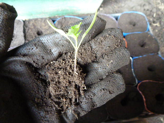 まずはなすの苗。こちらはニローネの仲間、根っこ農園のなすの苗。