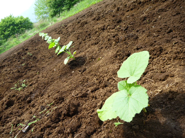 なすは今回そんなに大量でないので、畑の空いている場所に植えました。