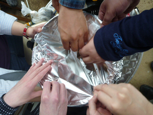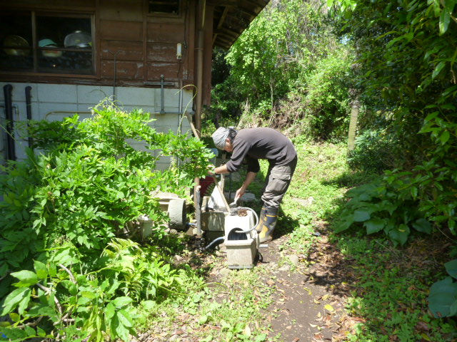 毎回農具を作業後に洗って休憩します。相当に古い農具も使用していますが、