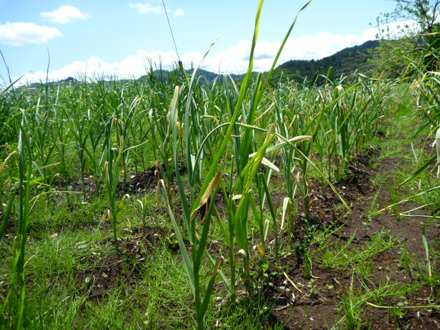 こちらは収穫間近のにんにく。