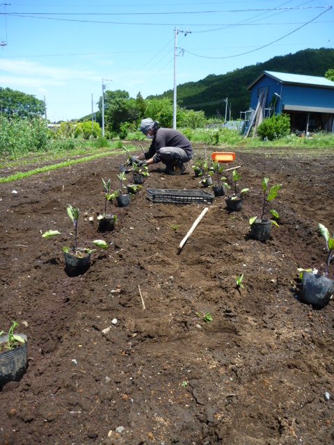 そんな中、午前中はなすとヤーコンの定植と植え付け。