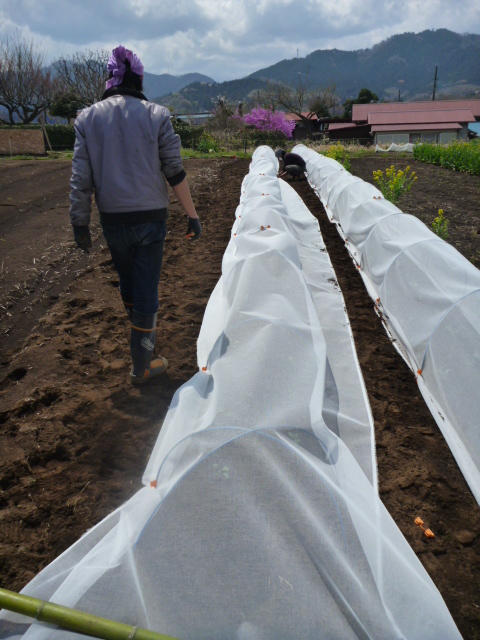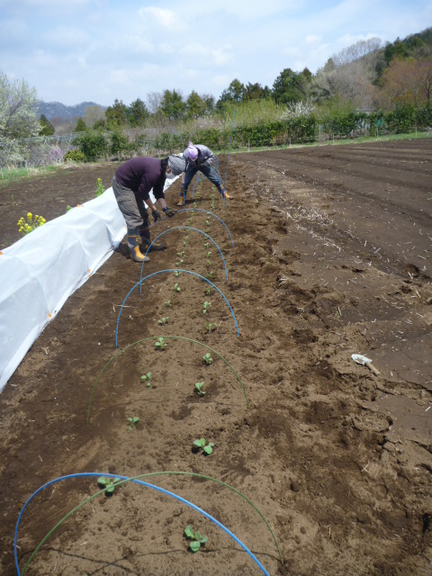 この時期は虫がキャベツにつくのを防ぐため、トンネルをすることにしました。