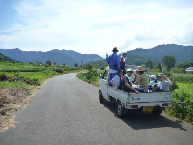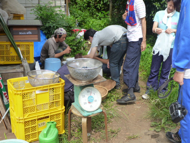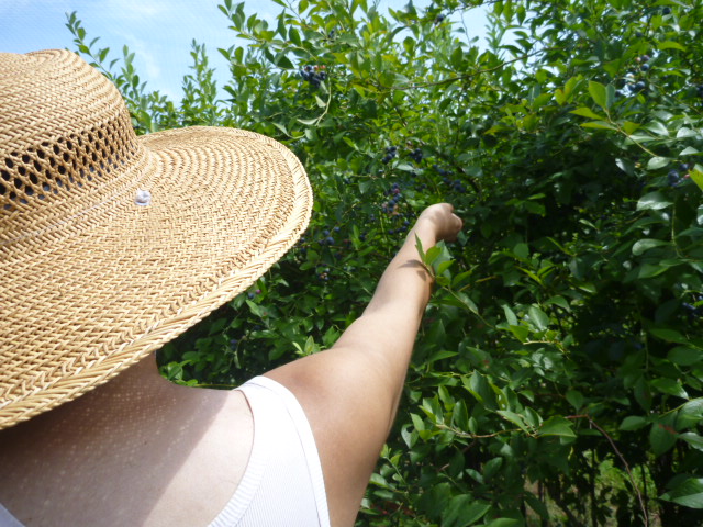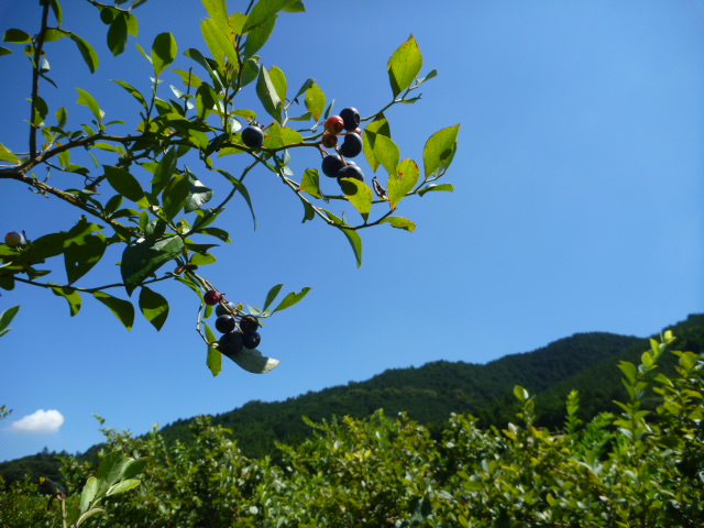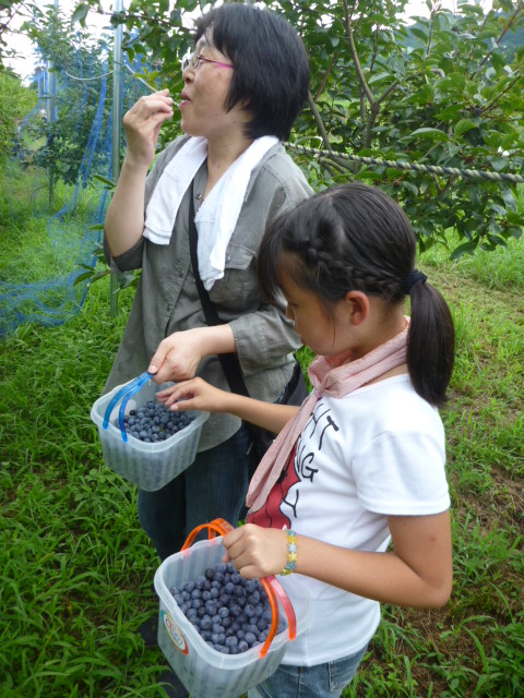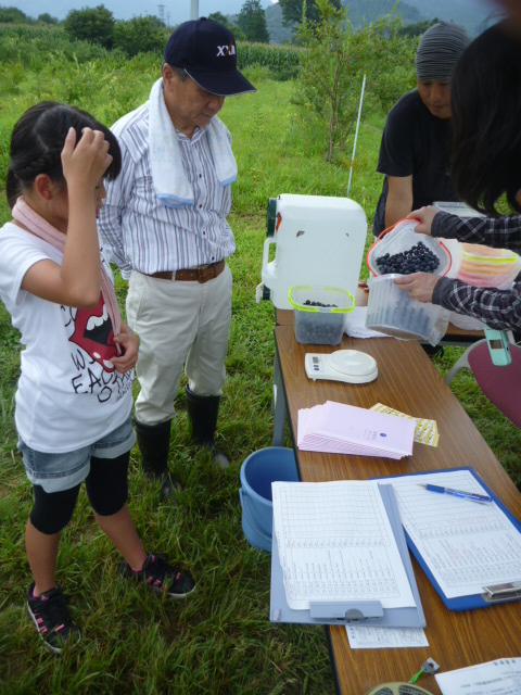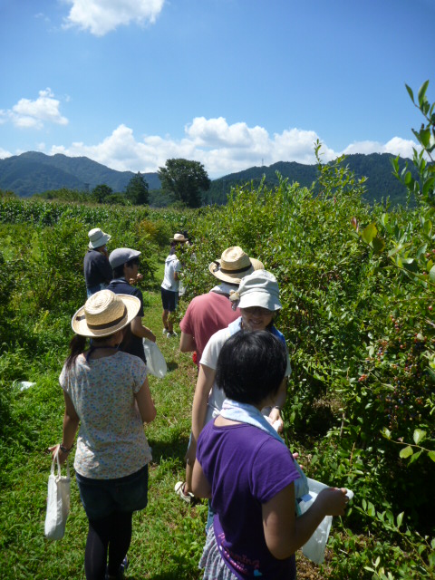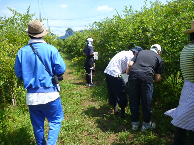 快晴の中、中学生達と行ったブルーベリー摘みの様子。