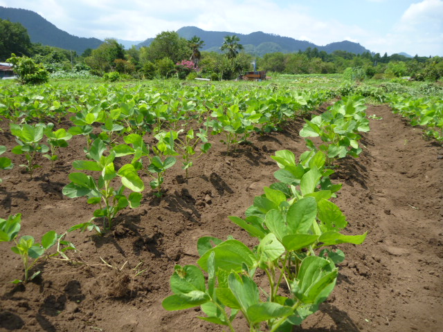 6月に収獲した小麦の後の畑に植えられるものでパン屋さんで多く使うものといえば小豆だ!ということです。