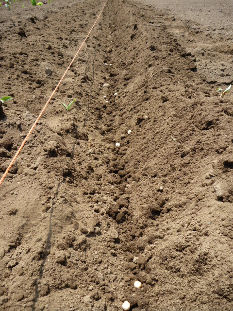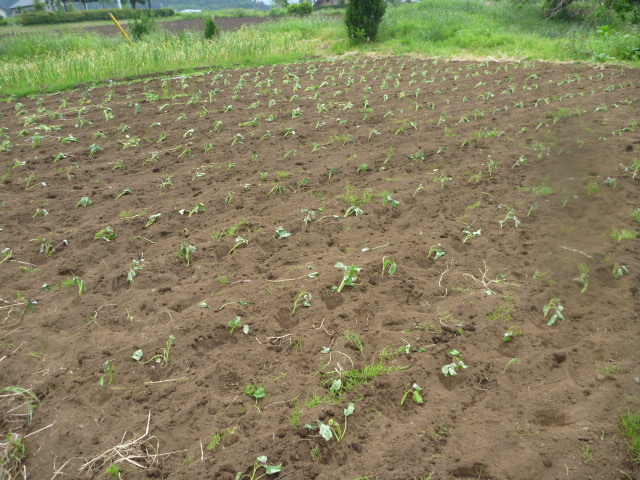 比べることが必ずしも良いことであるかは疑問ですが、近所の衆(津久井弁で人々)はもうおおかたインゲンの支柱立てが終わっています。